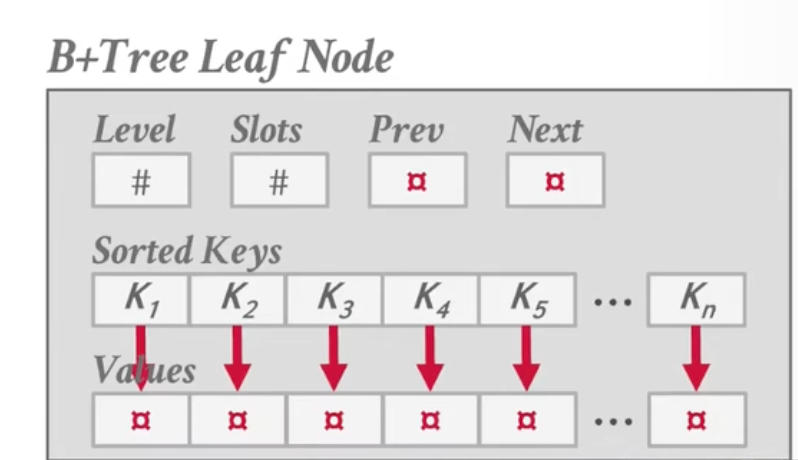- key map / indirection:在节点内部嵌入一个指针的数组,其中存储指向key-value对的指针(类似之前讲过的槽位数组)。