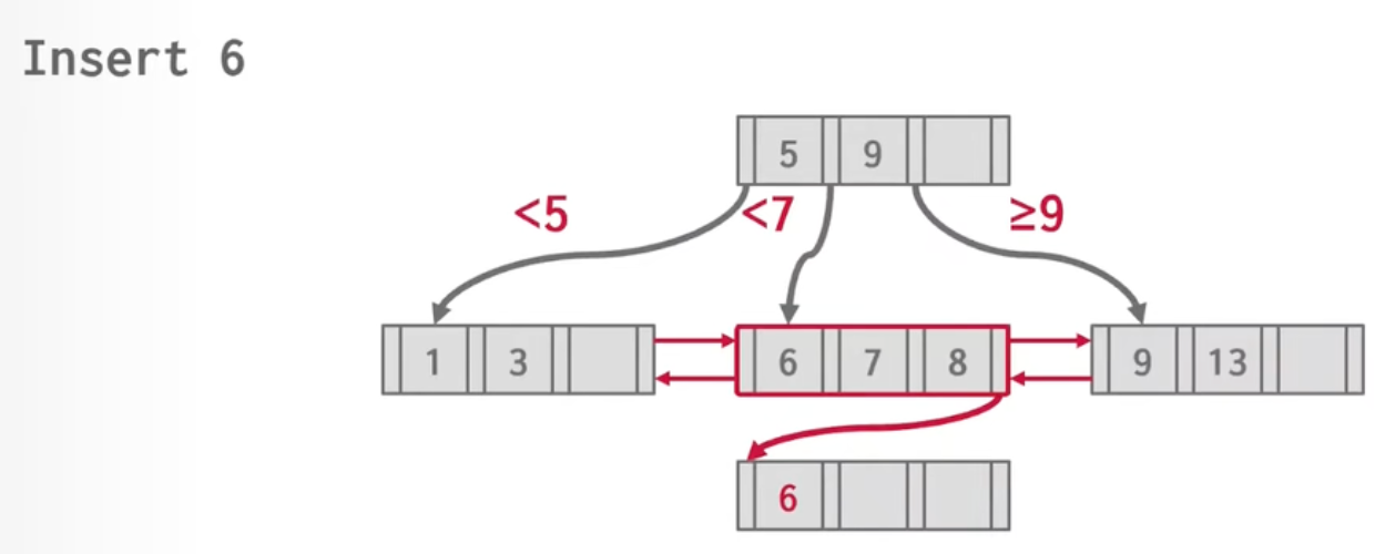 - 如果叶子节点有足够的剩余空间,插入操作结束;