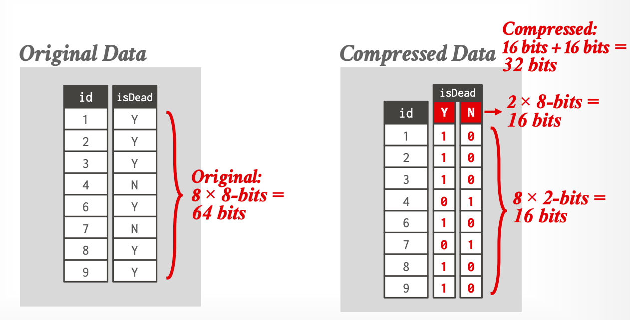 - 在此基础上可以进一步叠加字典编码等压缩技术。