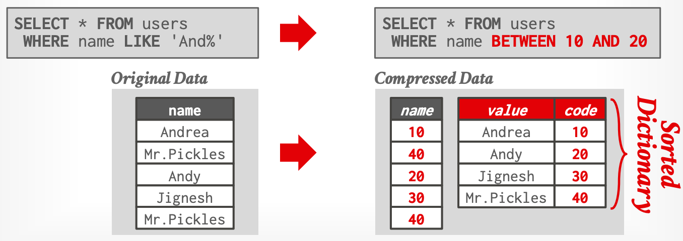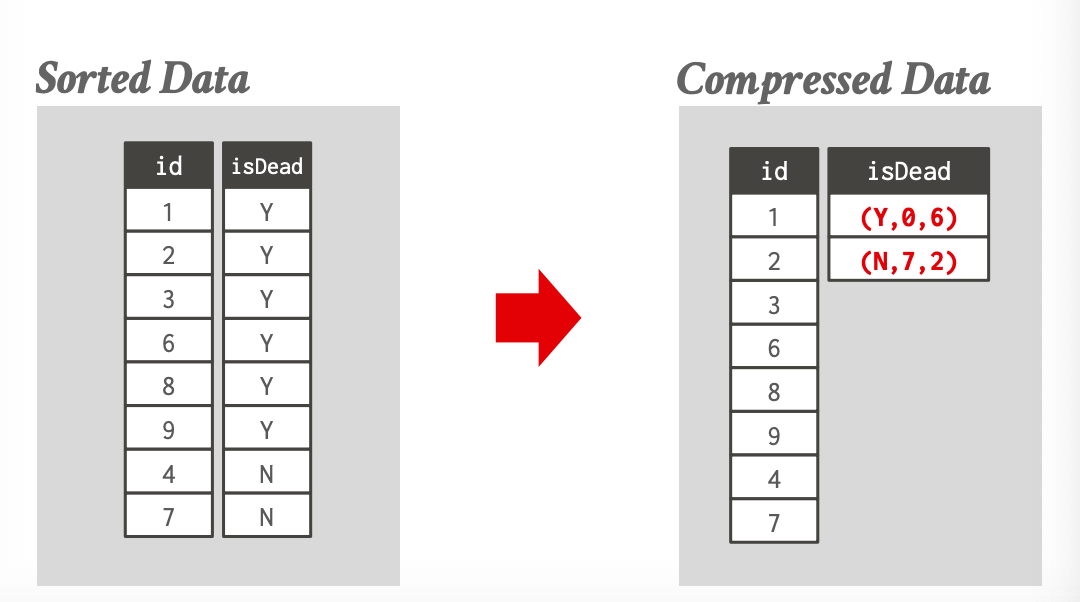 进一步地,排序后可与RLE等编码方式叠加获得更高压缩比,并加速范围查询。