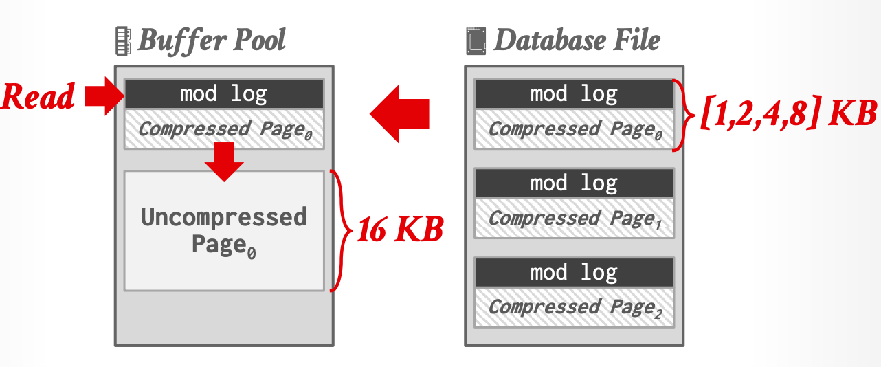 - mod log:用于记录页内增量修改,从而避免每次修改都解压整页;